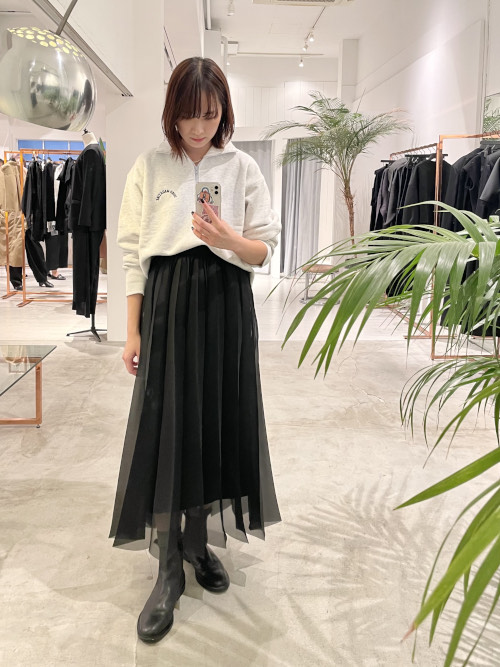 繊細なオーガンジー素材で仕立てたプリーツスカート。