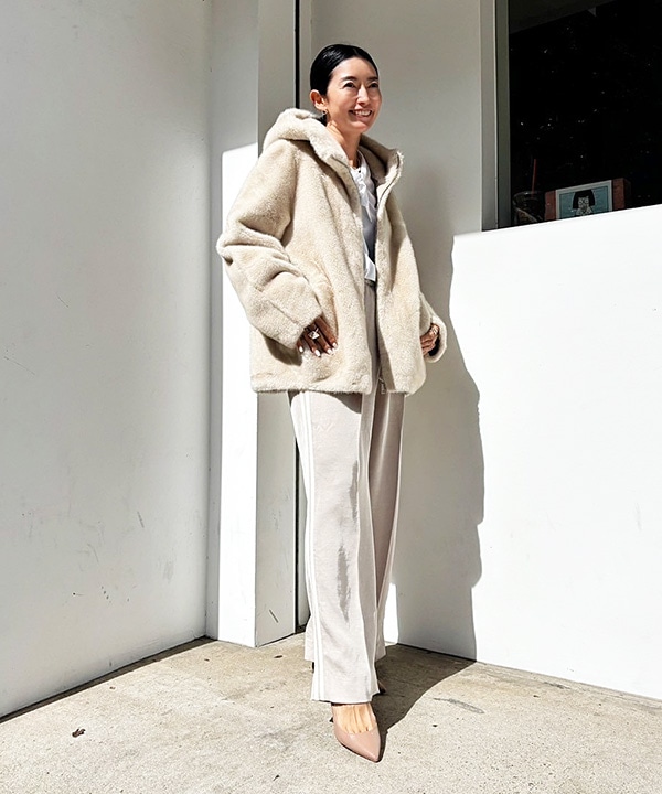 アウター:ATTENTIF/エコファーショートジップフードコート 47,300円(税込)