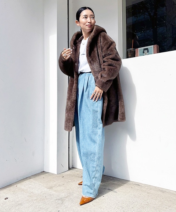 アウター:ATTENTIF/ミドルエコファーフードコート 49,500円(税込)