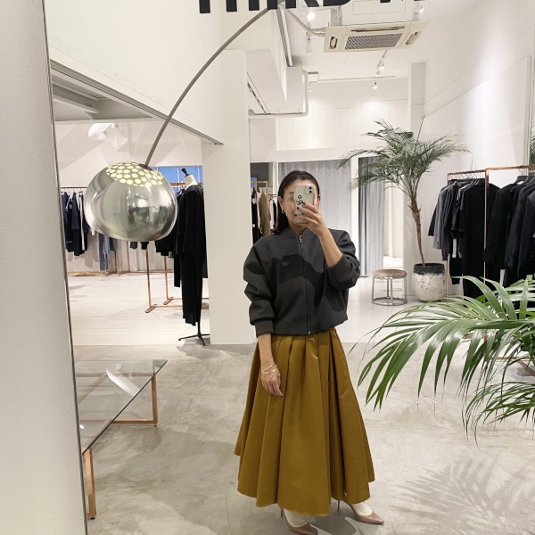 合わせたスカートはハイウエストボリュームスカート(お色はマスタード)です。