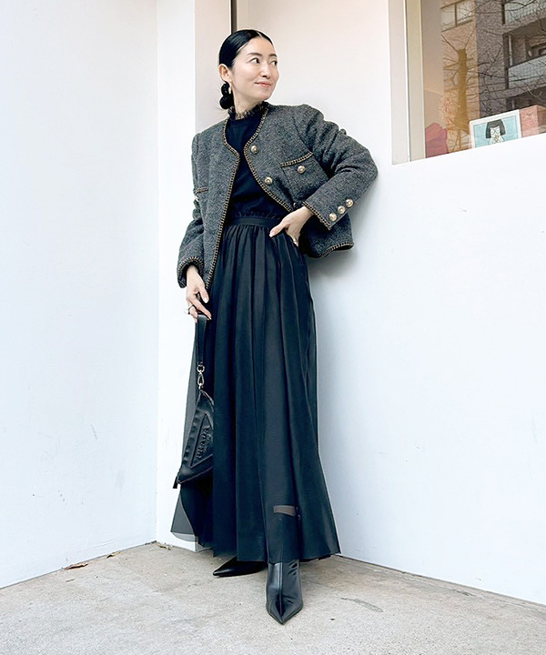 スカート:オーガンジープリーツスカート 49,500 円(税込)