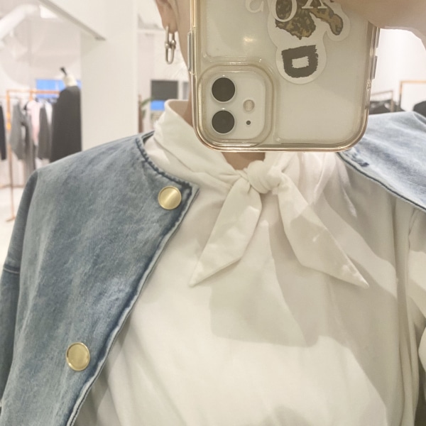 私はノーカラーデニムジャケットと合わせて着るのがお気に入りです。
