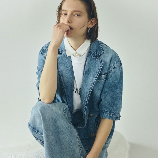 続いてノーカラーデニムジャケットです。