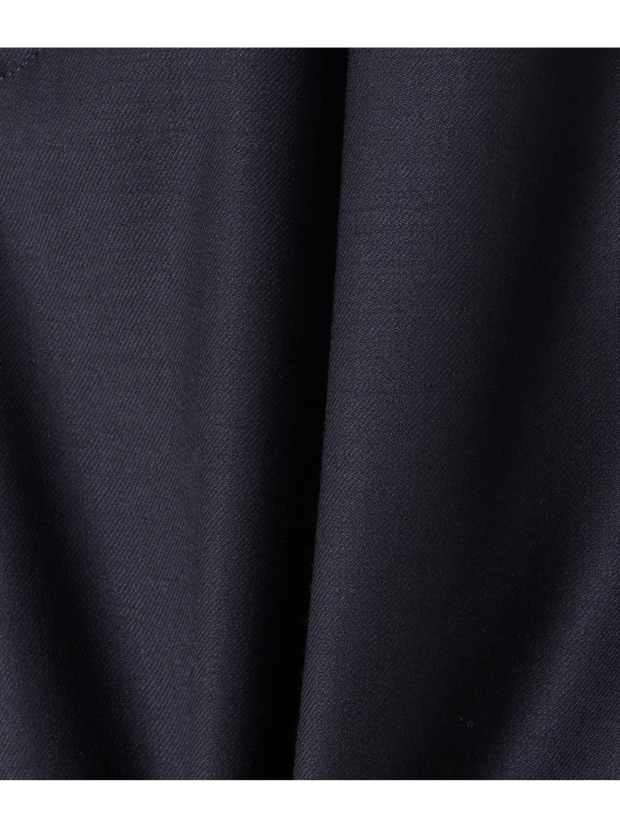 国内紡績のシルク混素材を使用し、カーマーベルトのディテールをハイウエストパンツに落とし込んだドレスパンツ。