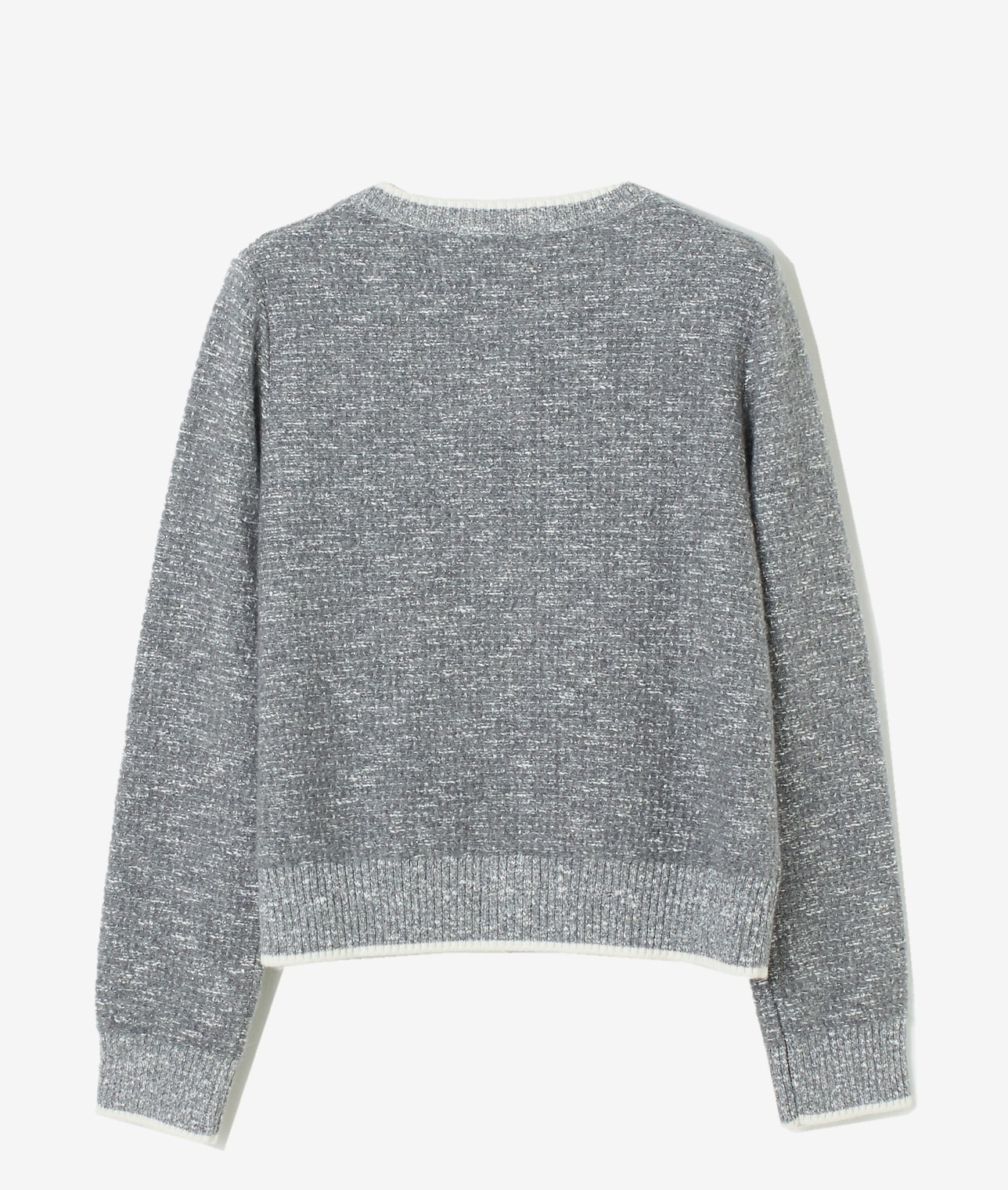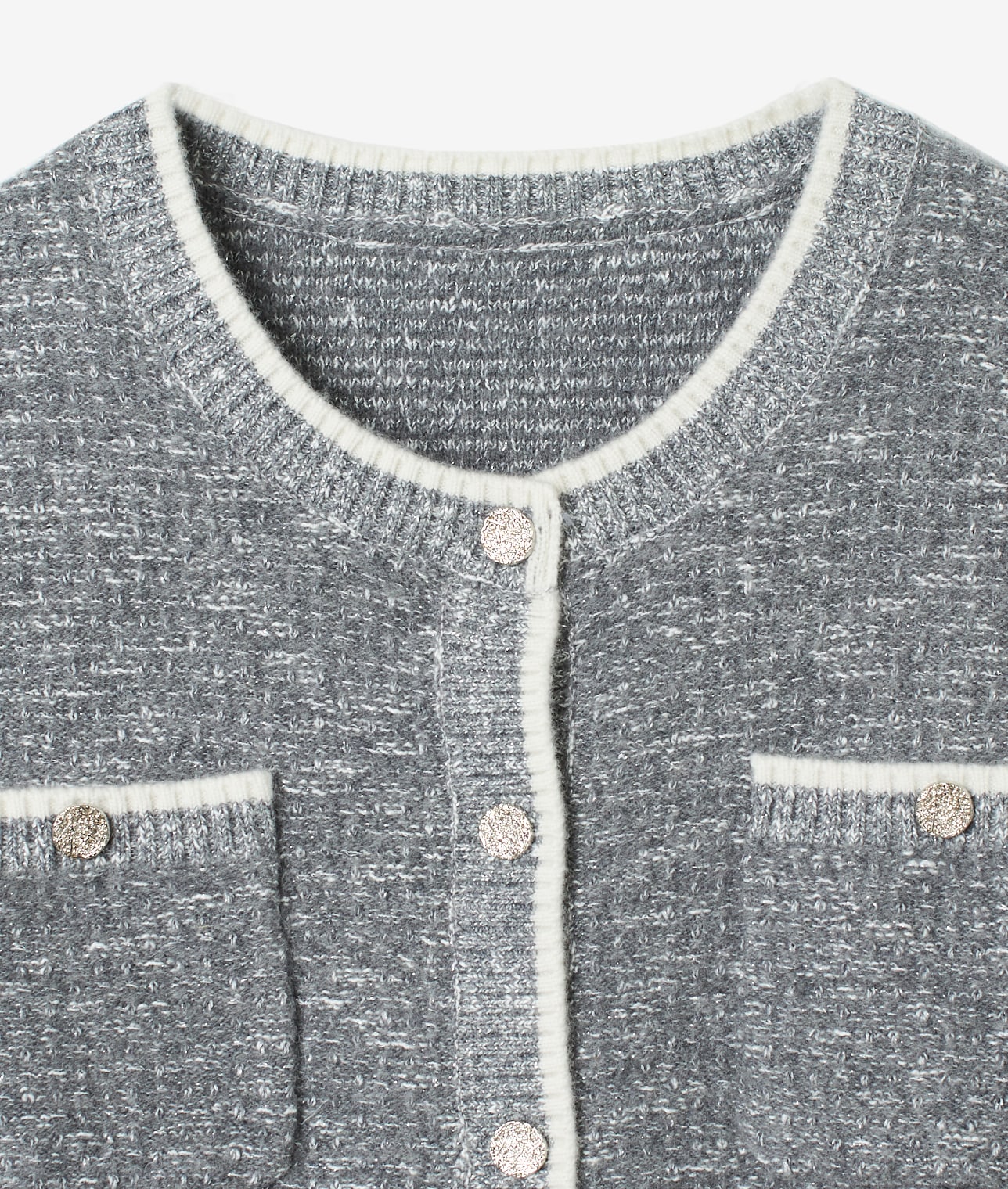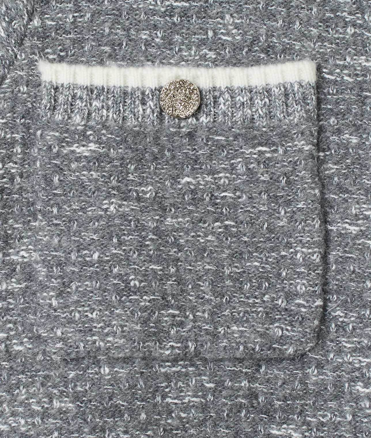MEILLEUR MOMENT/ノーカラーツィードライクニットカーディガン