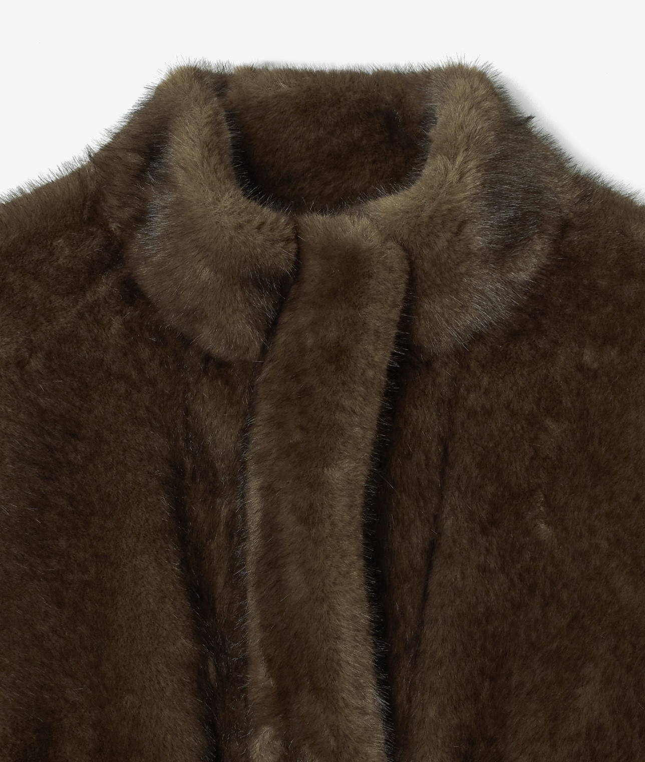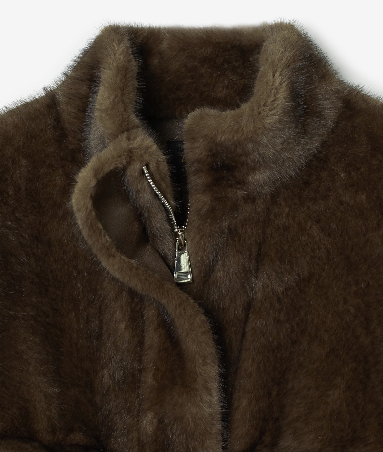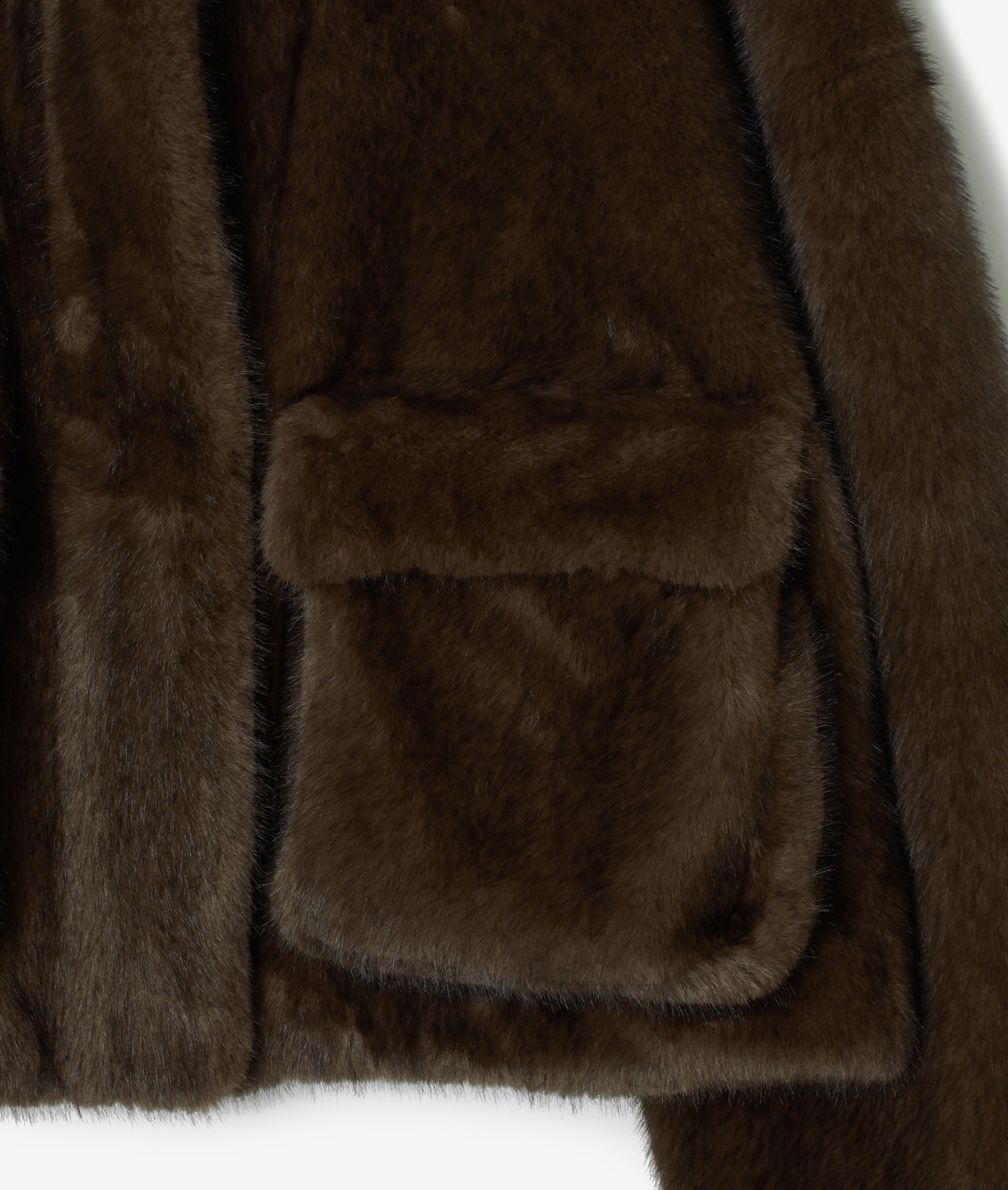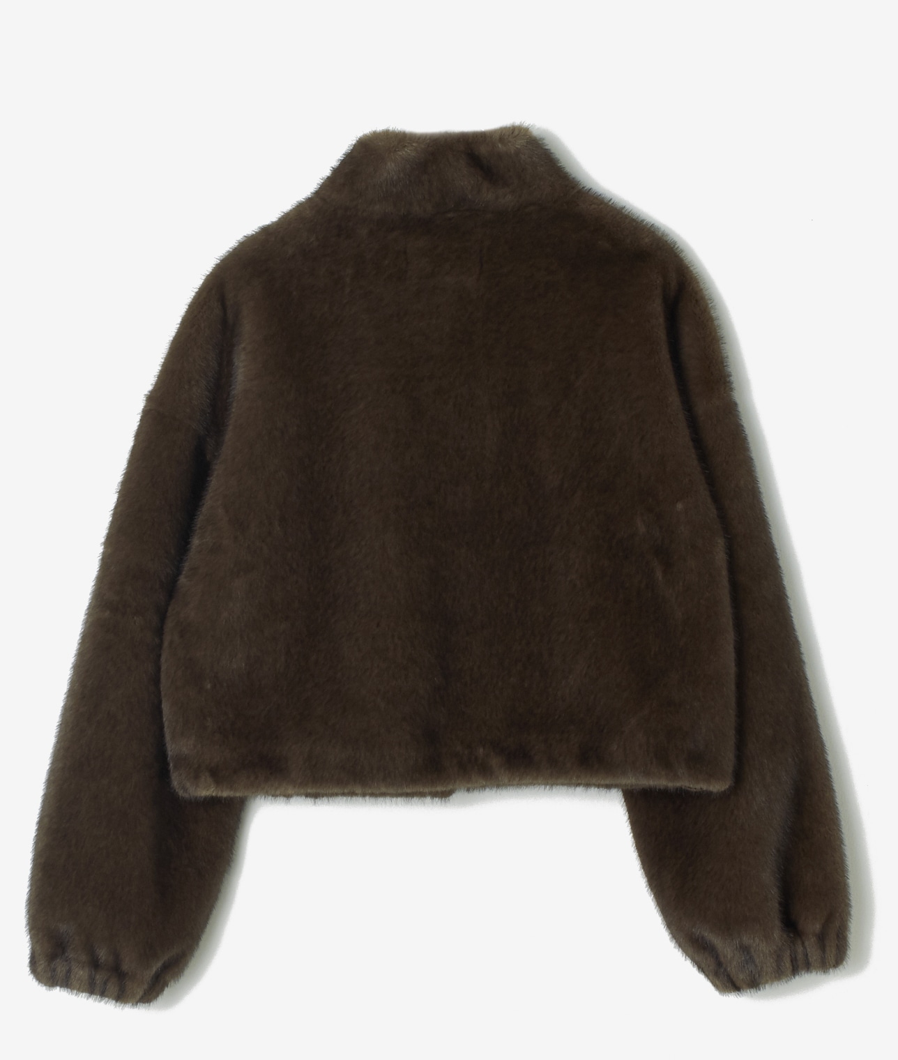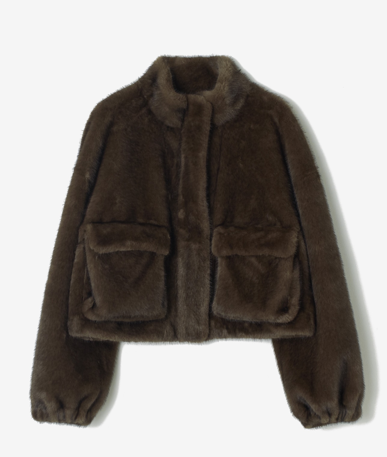 スタンドネックに大き目なポケットなど、カジュアルなデザインではありますが質の良いエコファーを使用することでリュクスな雰囲気に。