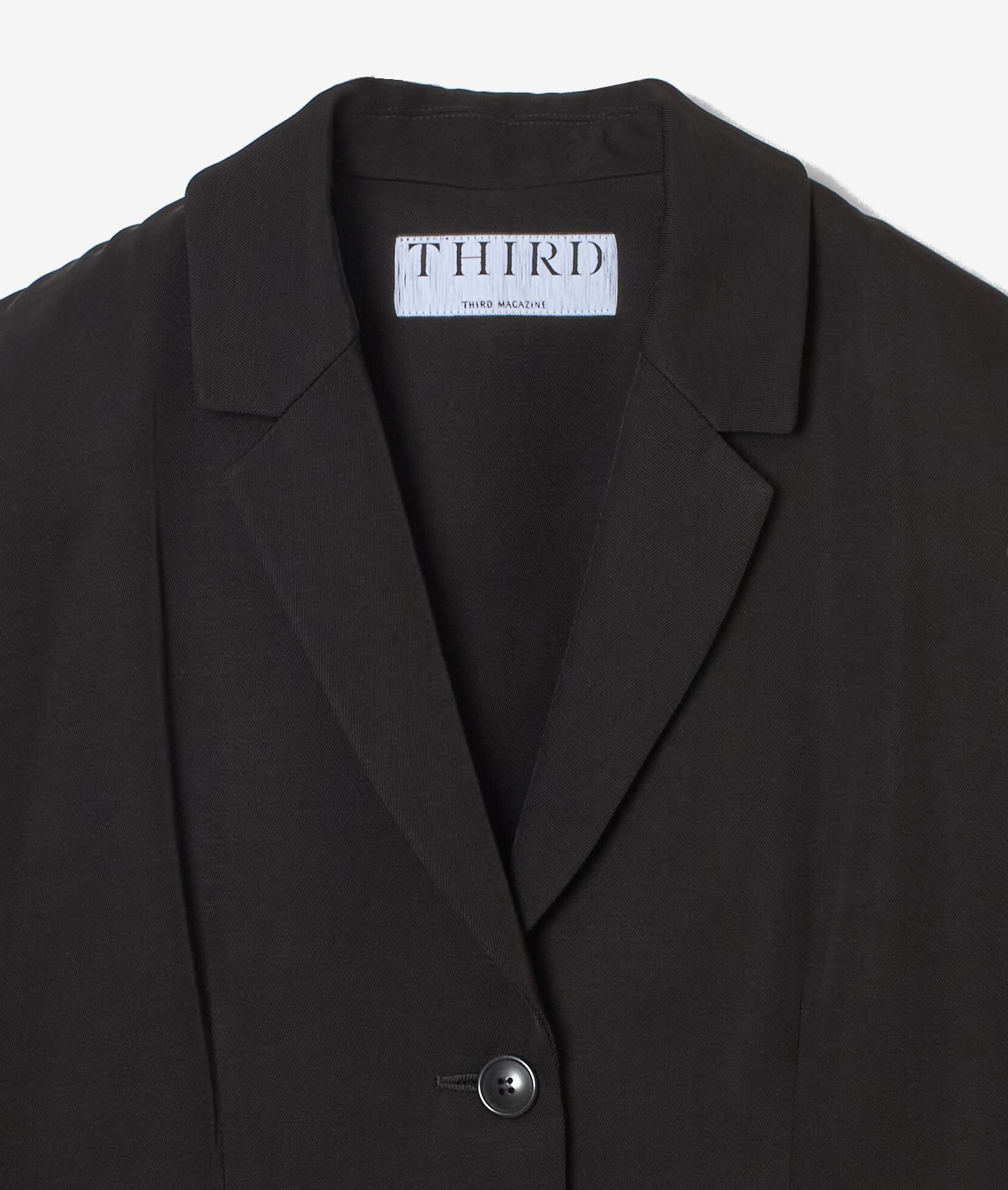 肩パットを入れ、丈感も長くモードな雰囲気に。