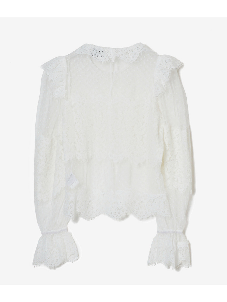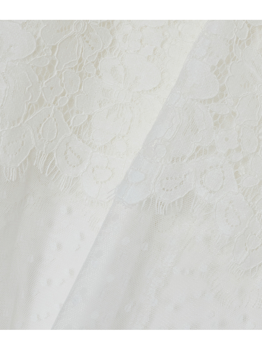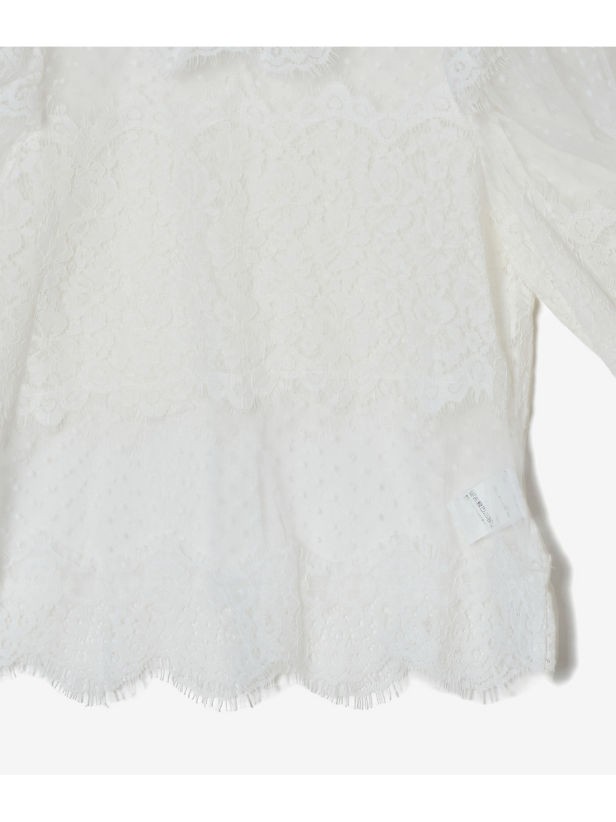 柄の異なるレースを切り替えて仕立てたプルオーバーブラウス。
