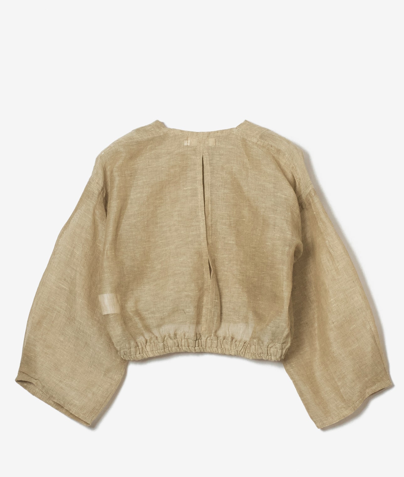 ほのかな透け感が魅力のノーカラーショートジャケット。