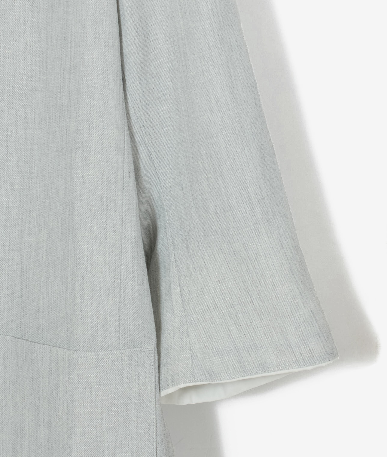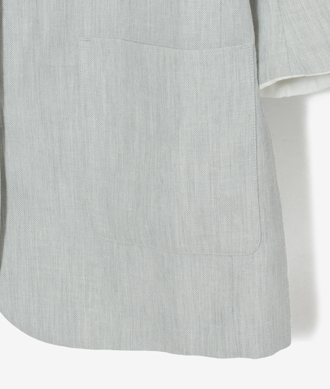 ライトグレーのカラーで、どんなコーディネートにもすっとなじむ万能ジャケット。