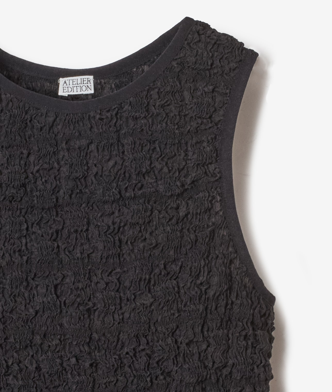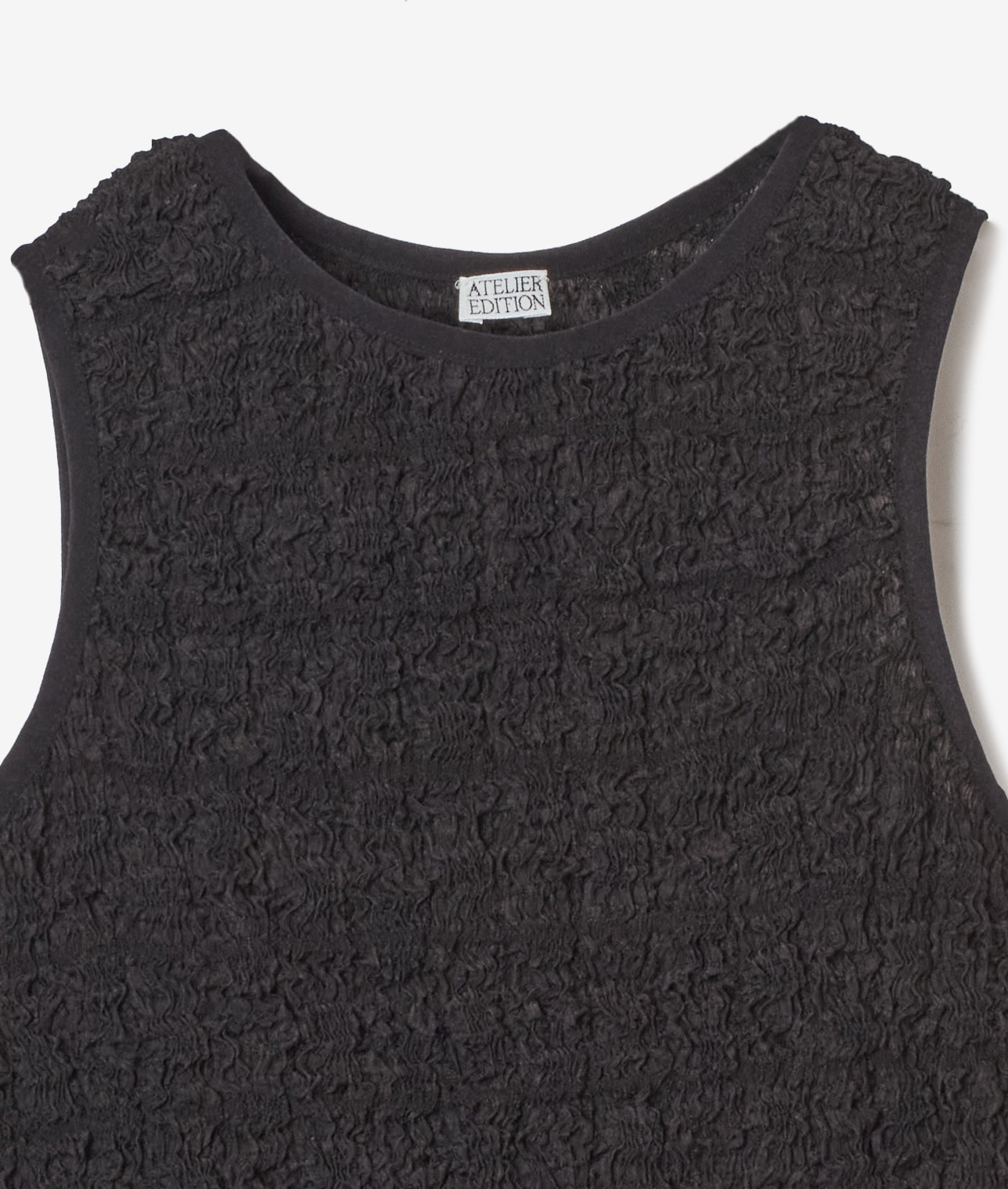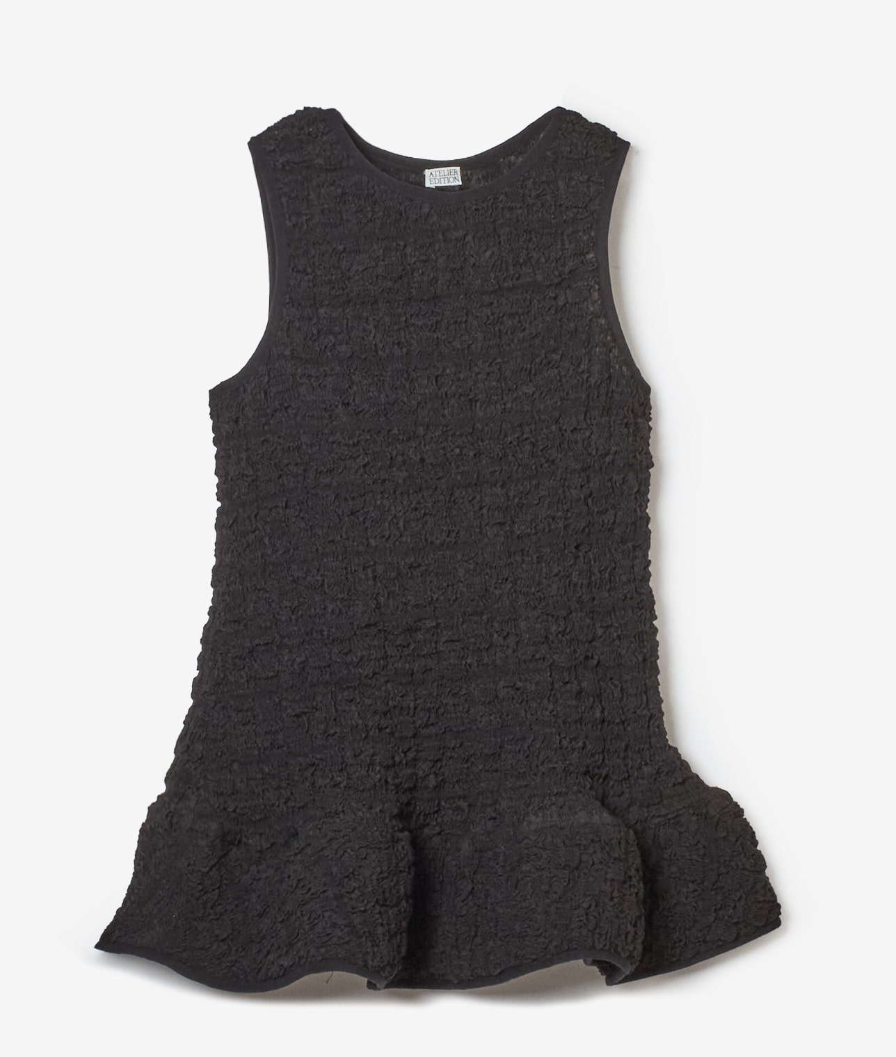 ふんわりと広がるペプラムシルエットが女性らしさを引き立てるノースリーブトップス。