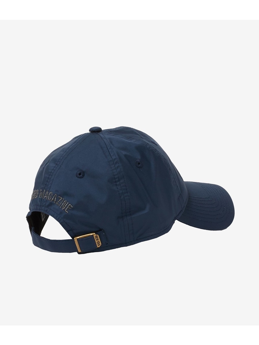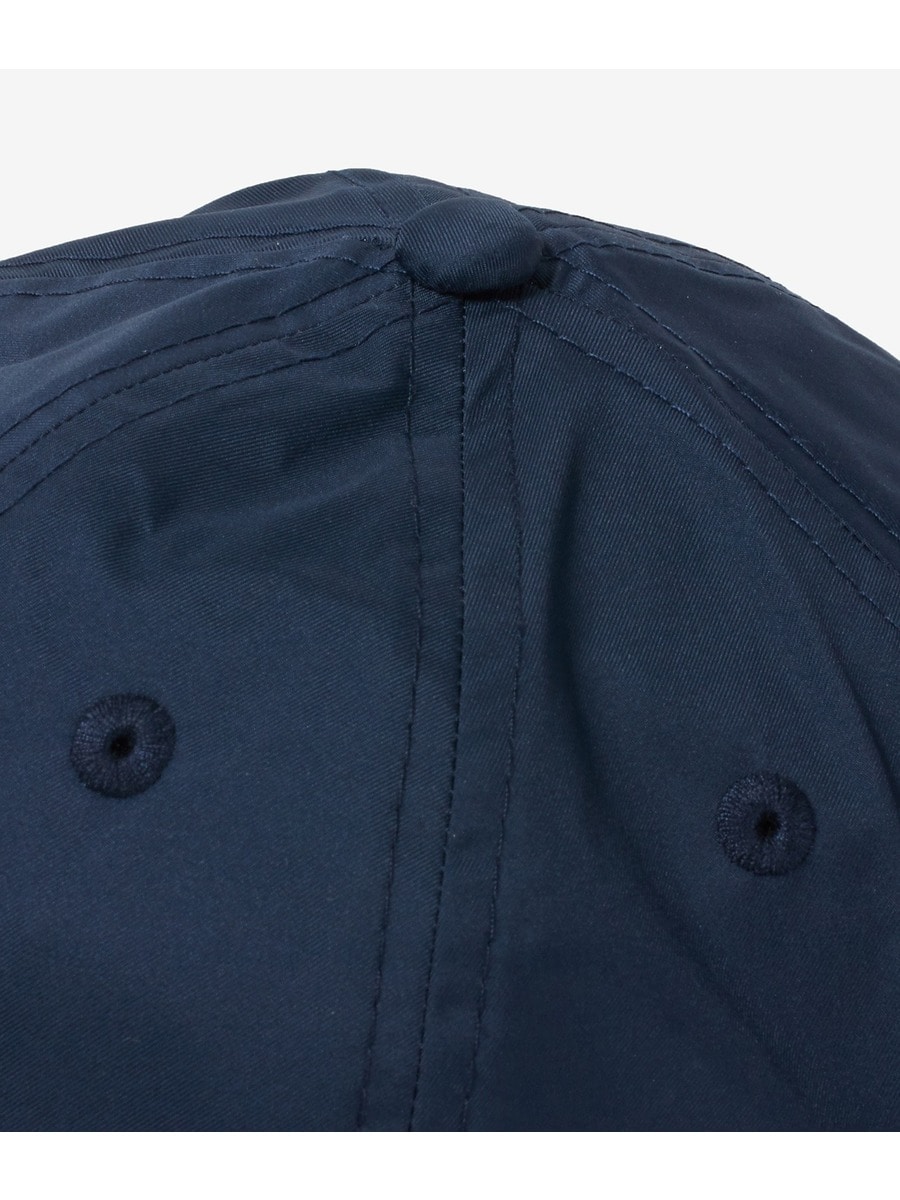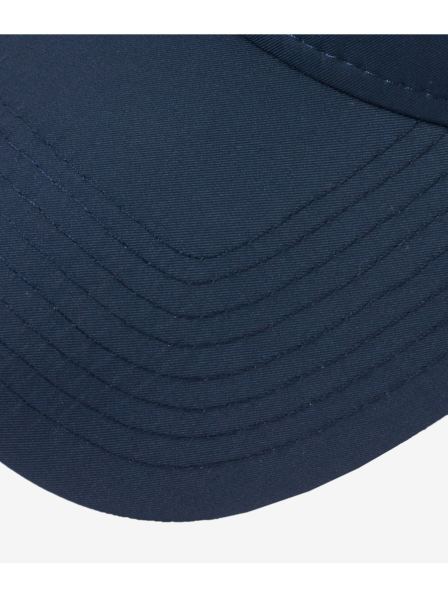 ロゴ刺繍をバックに合わせ、フロント~サイドにかけてはミニマルな印象に。