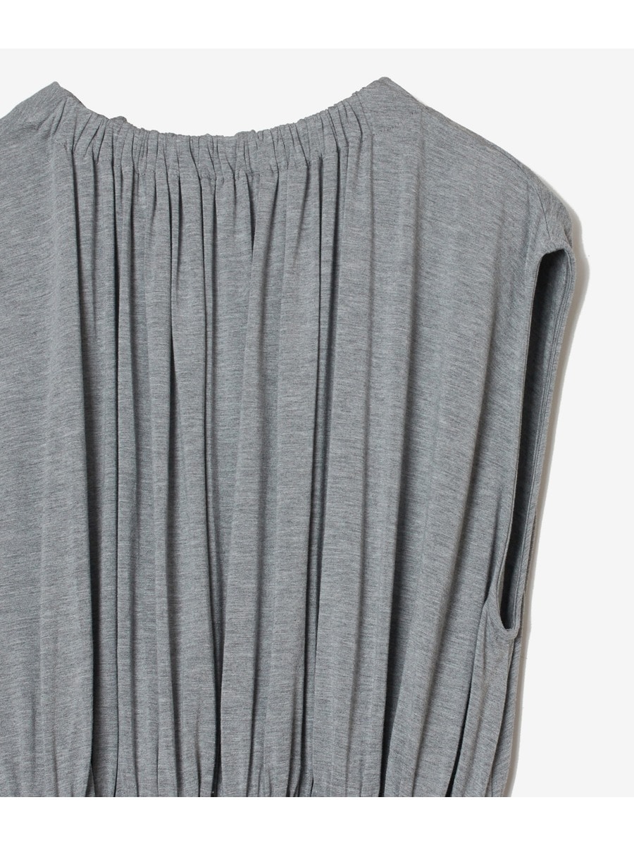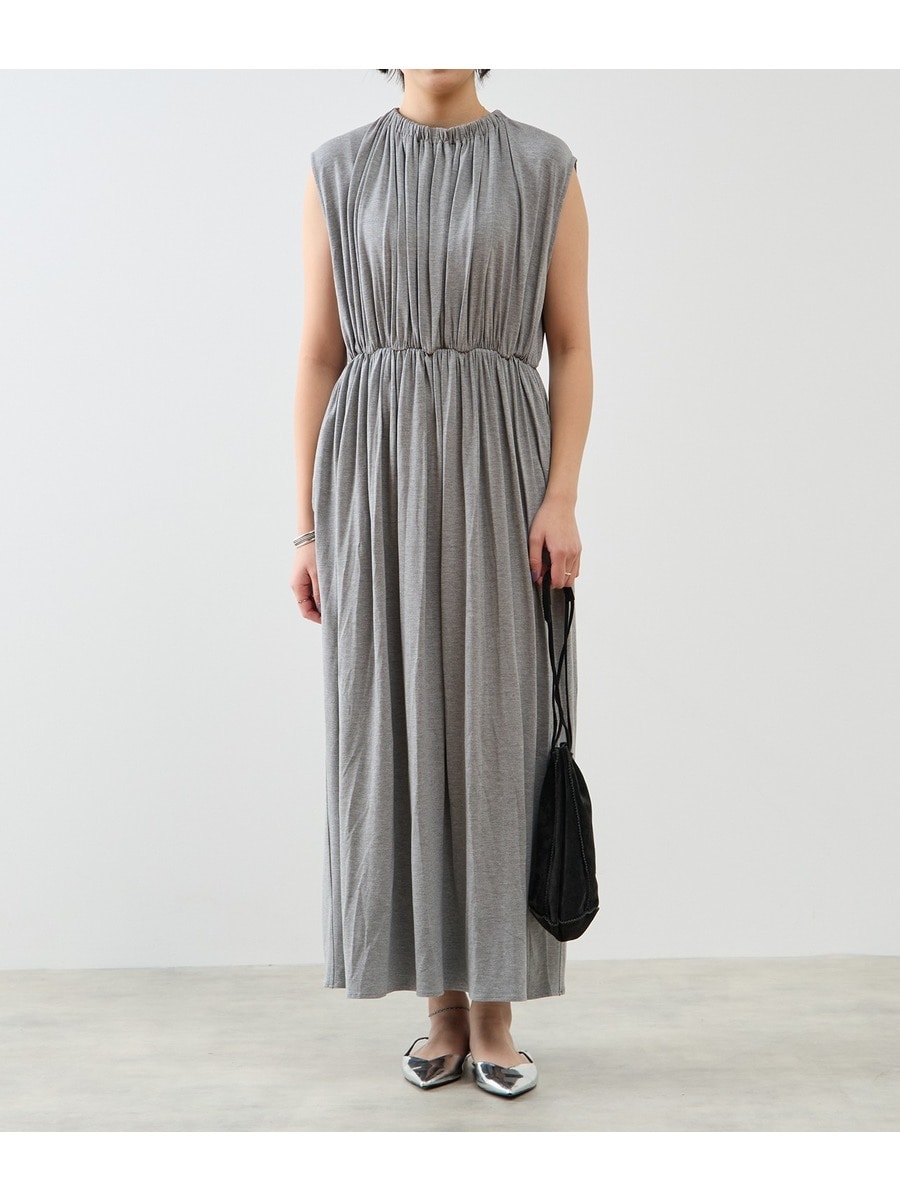 たっぷりのシャーリングディティールがポイントのワンピース。